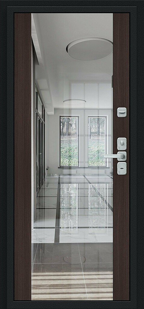 Отделка внутри: Декоративная панель с возможностью замены. Толщина 16 мм, Эко Шпон, зеркало Reflex.
