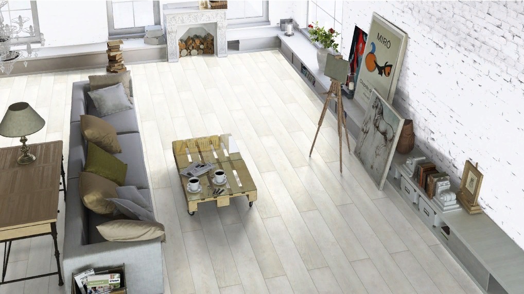 Ламинат Tarkett (Таркетт) ЭРХАРТ белого цвета с однополосным рисунком и глубоким тиснением передает натуральную текстуру дерева и визуально расширяет пространство. Четырехсторонняя фаска подчеркивает формат планки, создавая эффект пола из настоящих досок. Лаконичный цвет дополнит скандинавский стиль, минимализм и современную классику, хорошо сочетается с холодными и теплыми оттенками.